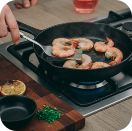 5․ Cook for 1–2 minutes on each side, until they turn pink and slightly curled.